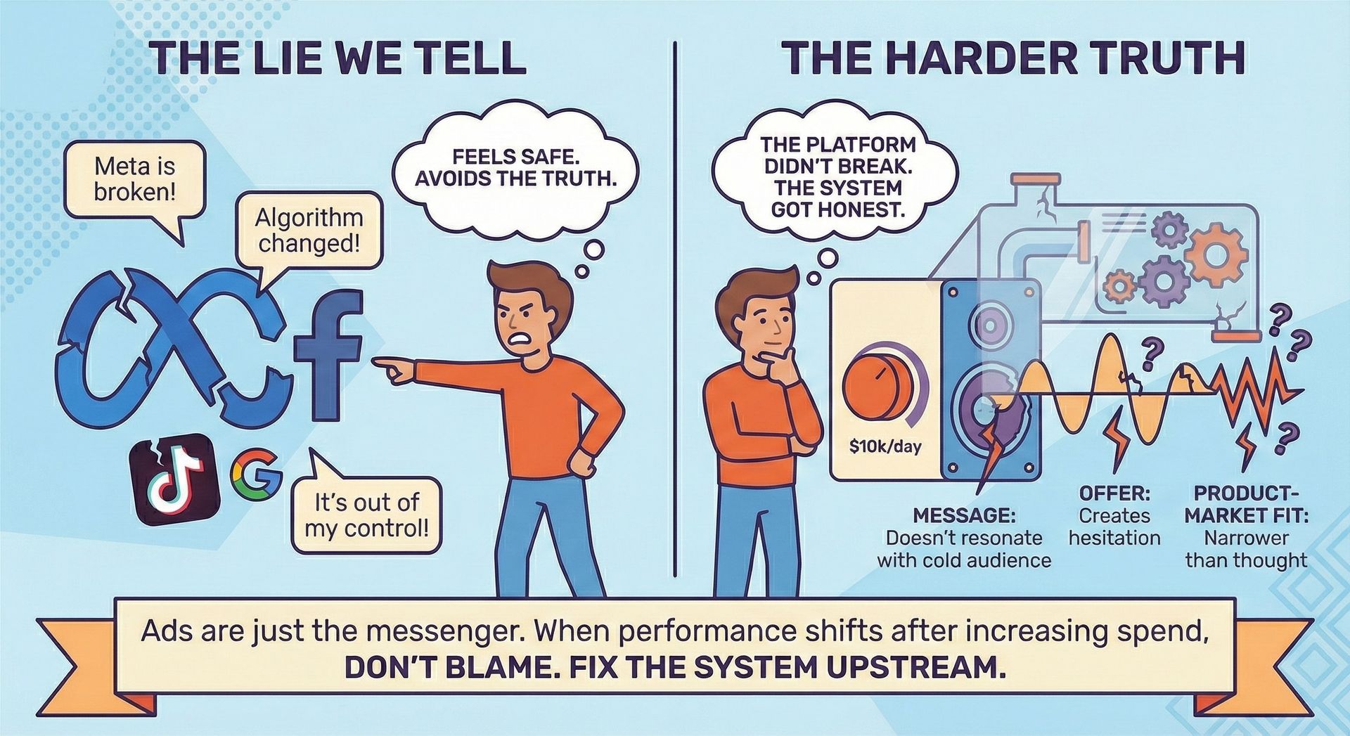 Because blaming the platform feels safe. It's external. It's out of your control. And it means you don't have to look at your own system.
