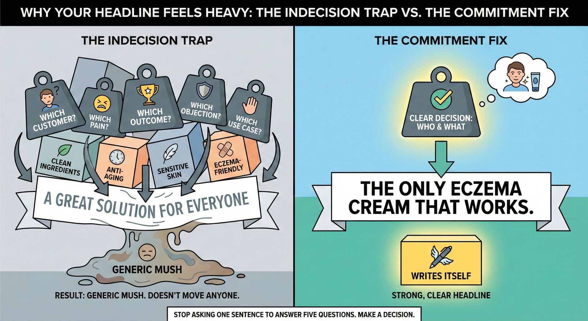 The fix isn't finding better words. It's making a decision about who you're really for ... and what actually changes for them.