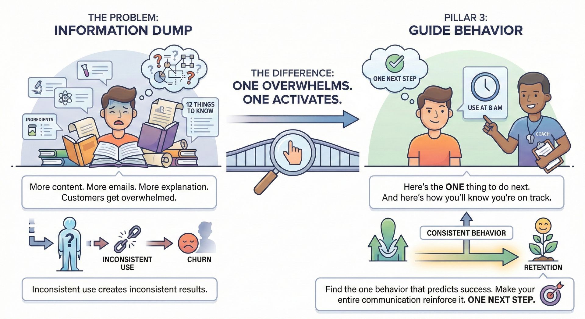 Customers get overwhelmed. They freeze. They use the product inconsistently ... or not at all.