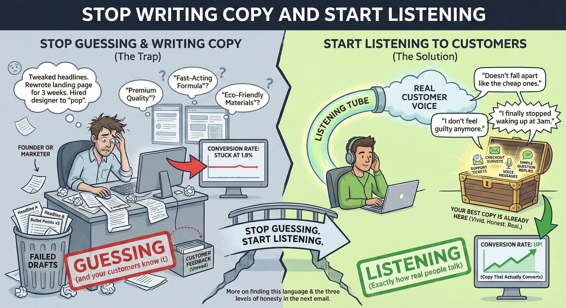I'm going to show you exactly how to stop guessing over the next few emails. How to find the language that's already working. And how to turn it into copy that actually converts.