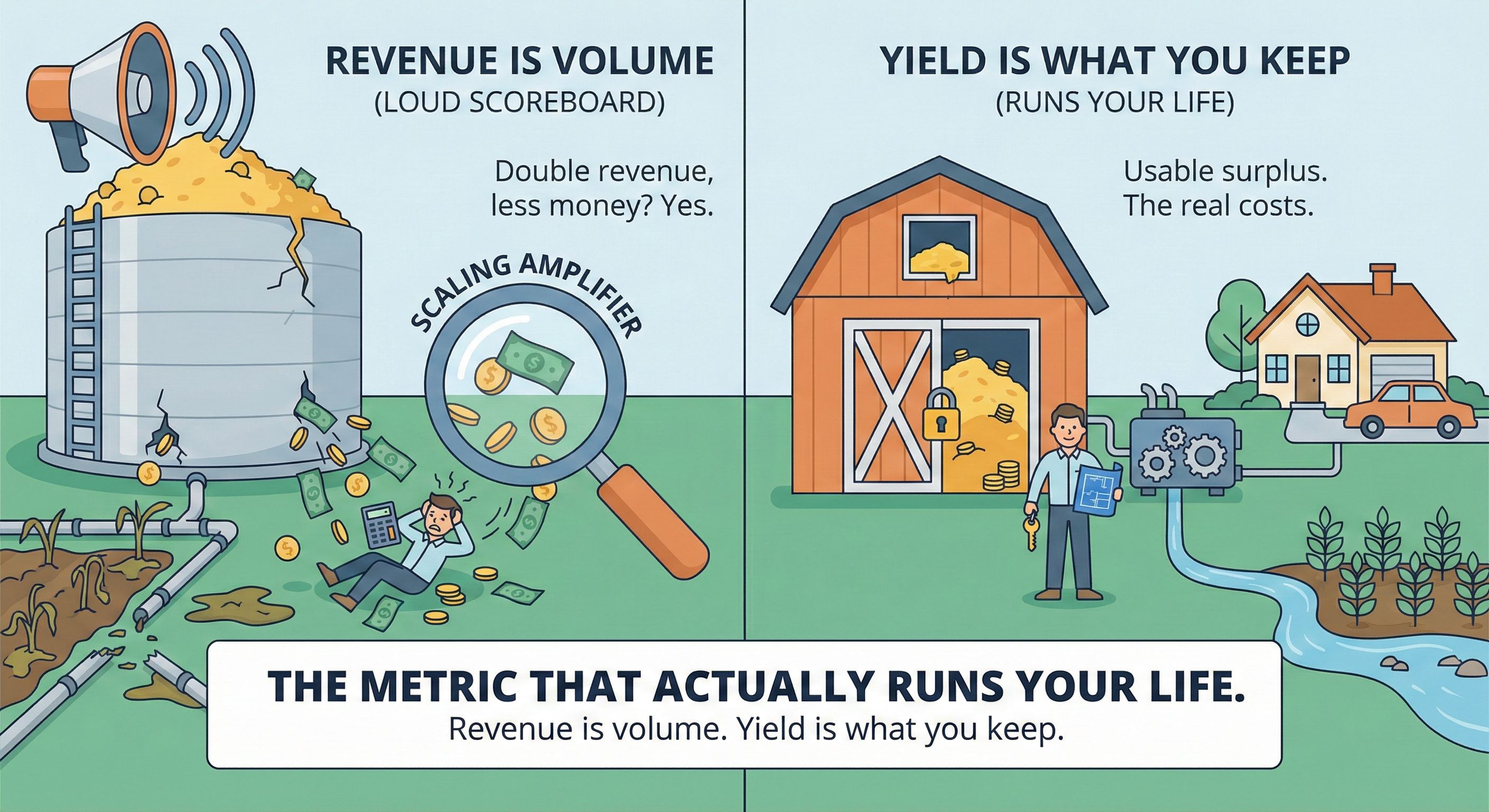 Yield is the usable surplus your business keeps for every customer you bring in. After the real costs. After the refunds. After the timing gaps. After all the stuff that doesn't show up in the "revenue" number on your dashboard.