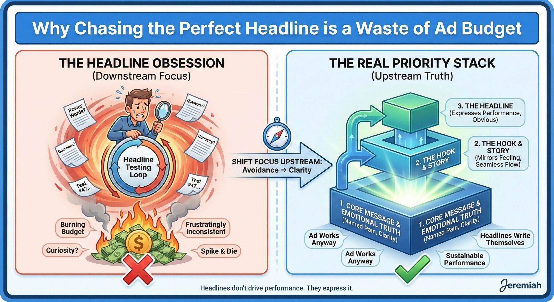 They treat headlines like the main lever. The thing that'll finally unlock performance if they just get the wording right.