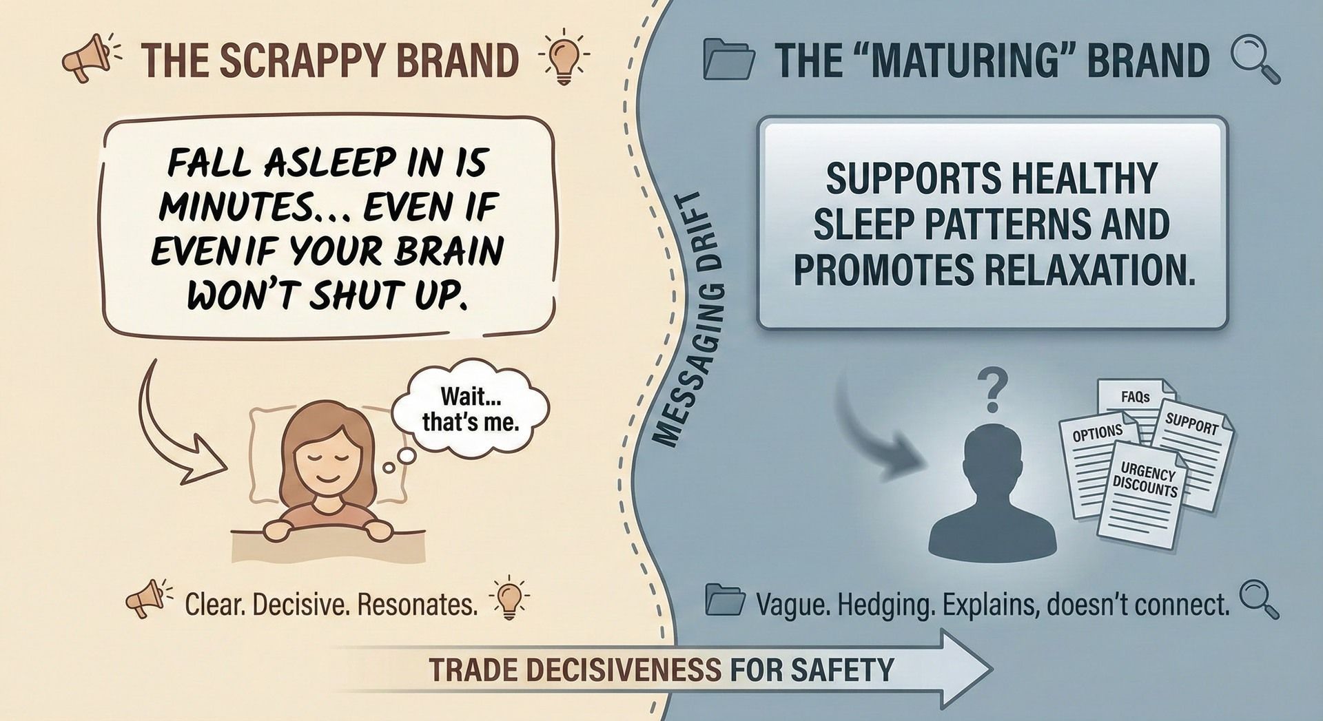 A brand starts scrappy. The messaging is direct, specific, maybe even a little edgy.
